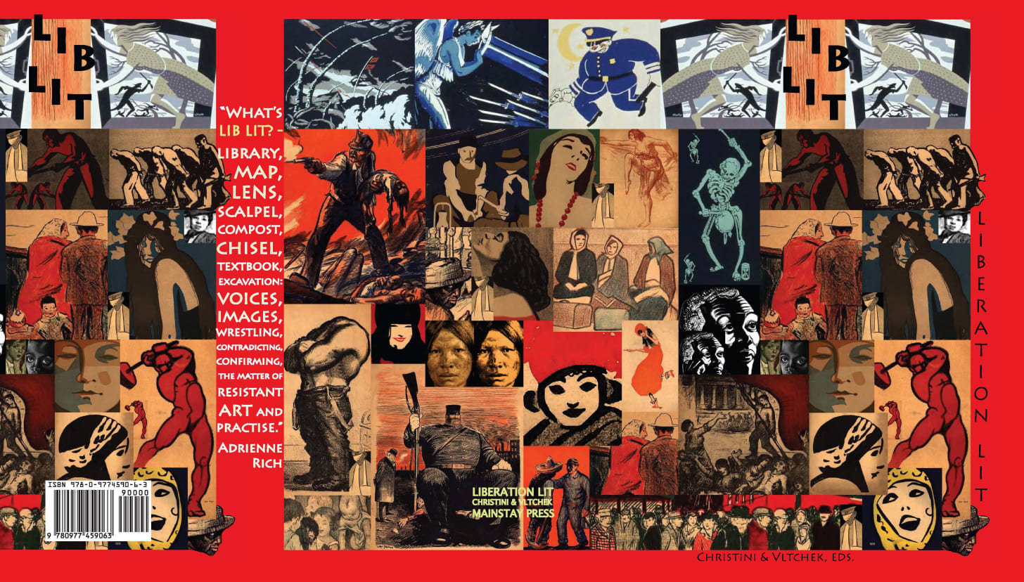 The cover collage of Liberation Lit originates mainly from illustrations of The Masses magazine from early last century, and posters from the WPA Federal Theater Project.